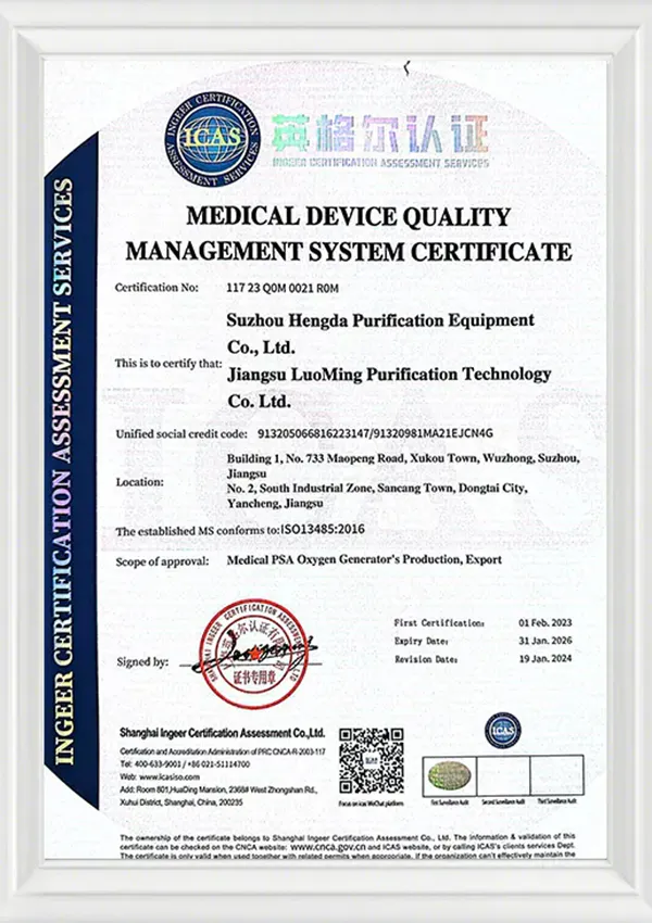 A Luoming é especializada em equipamentos relacionados a gases, incluindo geradores médicos de oxigênio com peneira molecular, sistemas médicos de geração de oxigênio, sistemas modulares de geração de oxigênio, sistemas de geração de oxigênio de alta pureza para aviação, sistemas médicos de ar comprimido, cilindros portáteis de oxigênio e outros equipamentos de separação e purificação de gases.