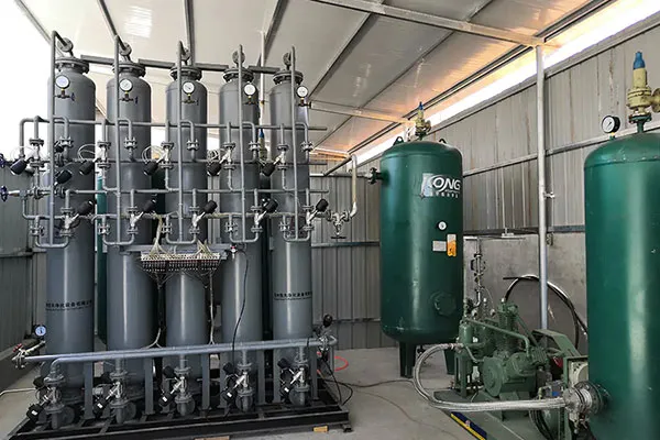 A unidade baseada em PSA remove efetivamente a umidade e traços residuais (como amônia não reagida) da mistura de gás de craqueamento, ao mesmo tempo em que proporciona desidratação profunda e secagem para hidrogênio, hélio e oxigênio. A mesma configuração suporta secagem e purificação por regeneração térmica para outros gases industriais.