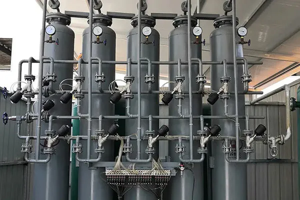 O gerador de hidrogênio de alta pureza PSA foi projetado para operar em conjunto com unidades de hidrogênio por decomposição de amônia e também funciona como uma unidade de secagem e purificação por regeneração térmica para outros gases. A unidade remove a umidade e as impurezas residuais do gás misto de craqueamento de amônia e realiza a desidratação profunda e a secagem de hidrogênio, hélio, oxigênio e gases similares.